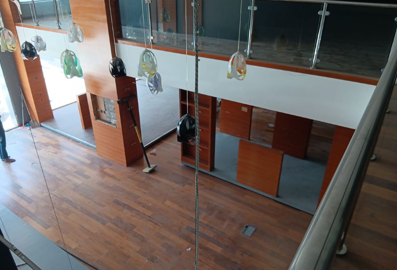 The size of the showroom is 200 sqmtr + Mezzanine.
